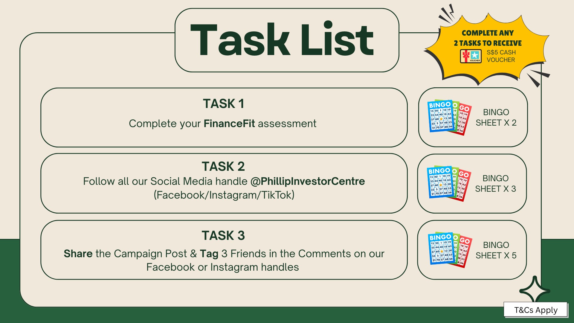 Special Term | Complete any (2) tasks from Group 1 – 3 | Qualify for the S$5 Cash Voucher |